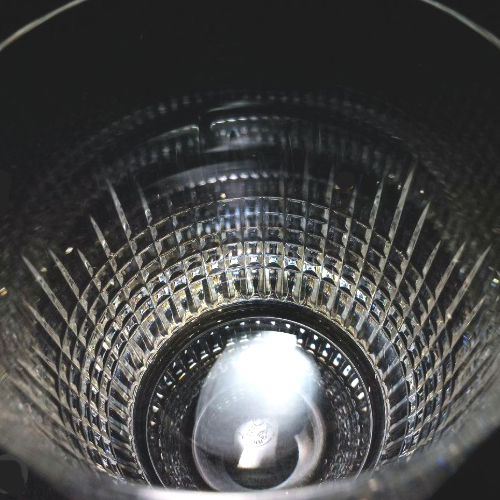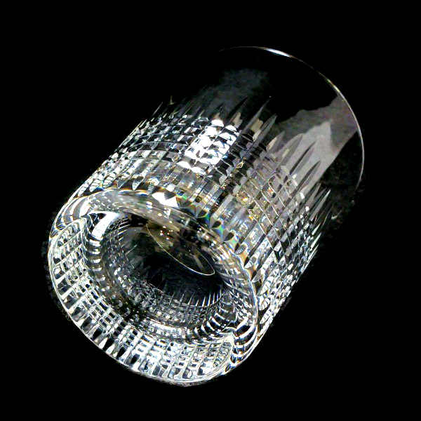 グラスを真上から見ると、このように見えます。縦と横に編みこまれた溝に、光が当たると豪華な光の渦を形成し、グラスが光輝きます。
